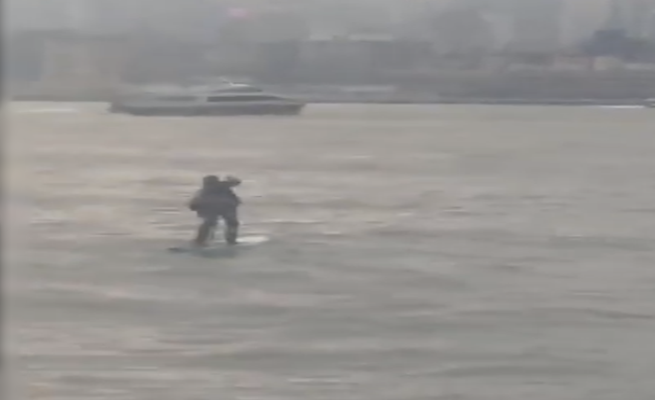 لم يرغب رجل في ولاية #نيوجرسي الأمريكية أن يتأخر عن مقابلة عمل، فقرر أن يجذّف على لوح خشبي عبر نهر هدسون، ليصل في الوقت المناسب.