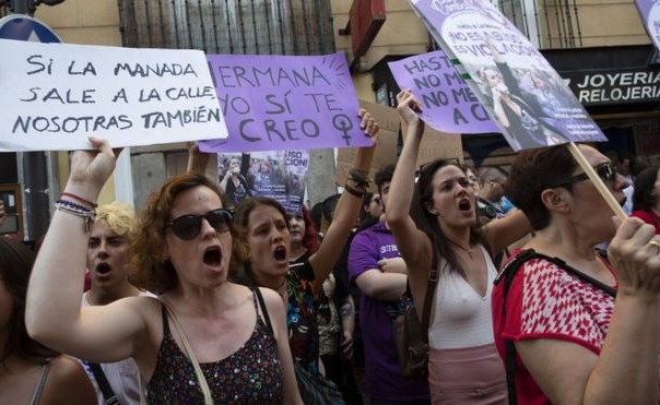 وتحول غضب المجتمع إزاء ما وصفوه بـ “نظام العدالة الذكوري” إلى مظاهرات في العديد من المدن الإسبانية بعد تبرئة الرجال الخمسة من الاغتصاب في إبريل/نيسان الماضي والحكم عليهم بالسجن تسعة أعوام للاعتداء الجنسي.