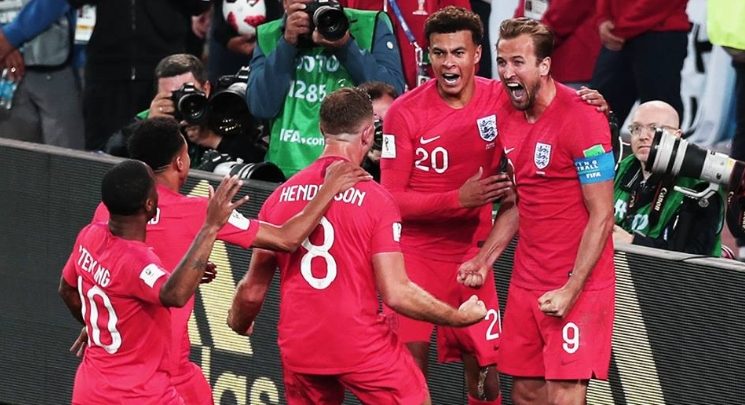 وبعد شوط أول بدون أهداف، تمكن هاري كين من افتتاح التسجيل لإنكلترا من ركلة جزاء في الدقيقة 57.