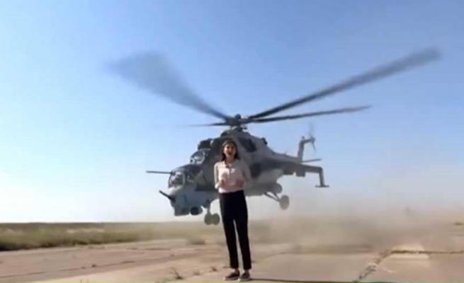 ما هي حقيقة مقطع مصور يظهر مروحية عسكرية كادت تطيح برأس صحفية روسية ؟ ( فيديو )
