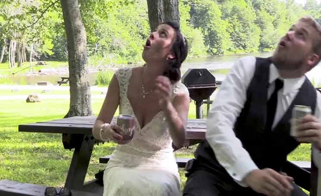 نجاة عروسين أمريكيين من جذع شجرة سقط خلال زفافهما ( فيديو )