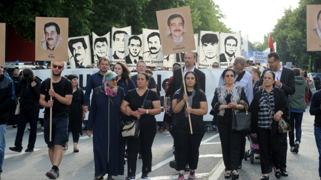 وطالب المشاركون في المسيرة بينهم ذوي الضحايا الأتراك، السلطات بالكشف عن كل جرائم النازيين الجدد، وارتباطاتهم، عبر لافتات كتب عليها “اكشفوا خلية إن إس يو، لا يمكن التغطية عليها”، و”يداً بيد ضد العنصرية”.