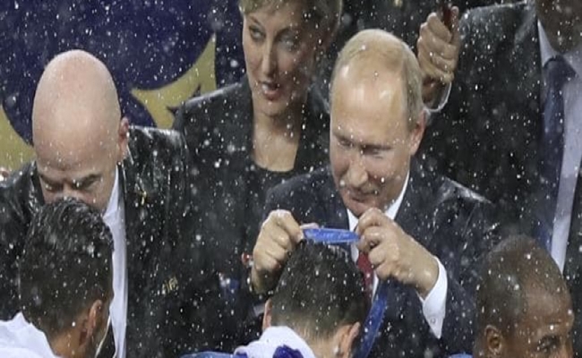 ماذا فعلت السيدة الواقفة وراء بوتين بإحدى الميداليات خلال مراسم تتويج فرنسا ؟ ( فيديو )