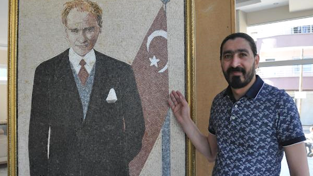 وأضافت الوكالة، أن صطوف قام برسم لوحة فسيفسائية لـ “أتاتورك” ومن خلفه العلم التركي، بأبعاد 1/2.2 متراً، استخدم فيها نحو 40 ألف قطعة من حجر الموزاييك، وتمكن من إنجازها في 4 أشهر.