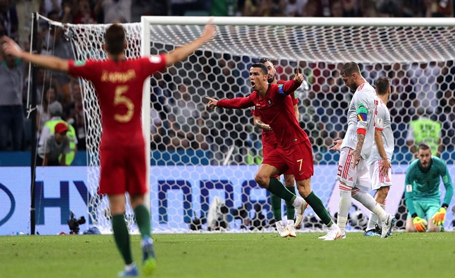 البرتغالي كريستيانو رونالدو (الهدف الثالث في المباراة ضد إسبانيا)
