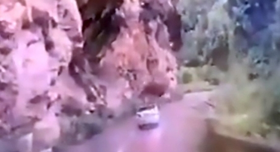 سجل أشخاص كانوا يستقلون سيارة لحظة فريدة لسقوط صخرة ضخمة فوق سيارة بها 4 أشخاص بشكل درامي يظهر كأنها اختارتهم لتستهدفهم بدقة متناهية.