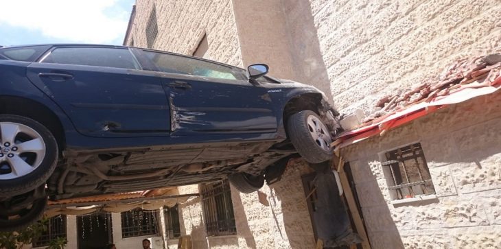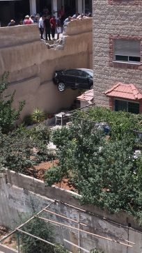عالقة بين جدارين .. حادث تدهور مركبة غريب في الأردن ( صور )