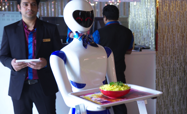 ” الروبوت روبي ” تقدم الطعام و تغني بالإنكليزية و الهندية في مطعم بدبي