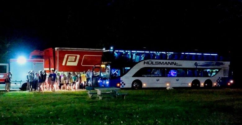 وقالت صحيفة “بيلد“، الثلاثاء، بحسب ما ترجم عكس السير، إن 105 أطفال تتراوح أعمارهم بين 10 إلى 14 عاماً، يرافقهم 20 مشرفاً، كانوا في طريق عودتهم من مدينة الملاهي “هايده بارك تسولتاو”، مساء الإثنين، وبسبب يوم كامل من الحرارة شعر بعض الأطفال بالإعياء، ما اضطر سائق الحافلة المؤلفة من طابقين -بالإضافة إلى 3 حافلات صغيرة- للتوقف على الطريق السريع، بالقرب من مدينة فايلدسهاوزن.