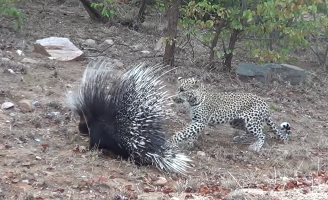 فهد يفشل بافتراس نيص بري في حديقة بجنوب إفريقيا ( فيديو )