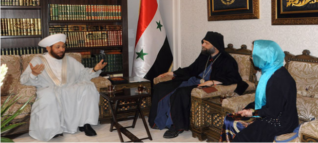قال مفتي بشار الأسد، أحمد حسون، خلال لقائه متروبوليت هنغاريا للروم الكاثوليك، فيليب كوتشيش، السبت، في دمشق، إن “سوريا تقارع الإرهاب نيابة عن العالم وهي مهد للرسالات السماوية، والتاريخ سجل مشاركتها بصنع الحضارة الإنسانية والانفتاح على العالم”.