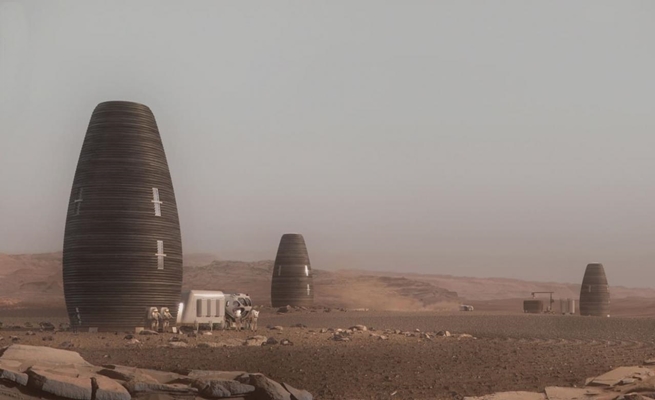 قد تظن للوهلة الأولى أن هذه الصورة تعود لخلية نحلٍ وجدها العلماء في الفضاء، ولكن إذا نظرت عن قرب، ستكتشف أنها صورة لمنزل، على سطح المريخ، بني بتقنية الطباعة ثلاثية الأبعاد.