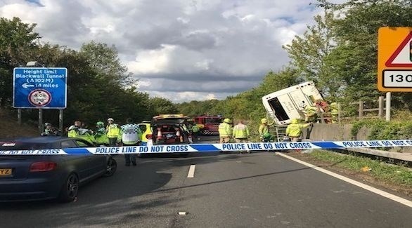 ولد طفل في مسرح حادث تحطم حافلة وقع على أحد الطرقات السريعة في #بريطانيا ، وأكدت شرطة منطقة كينت بأن الحادث أدى إلى إصابة 41 شخصاً، بعدما جنحت الحافلة وارتطمت بالحاجز الموجود على جانب الطريق.