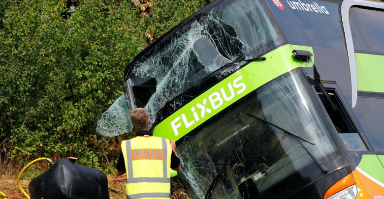 تعرضت حافلة لشركة “فليكس بوس” قادمة من العاصمة السويدية ستوكهولم، على متنها أكثر من 60 راكباً، لحادث في الطريق السريع رقم 19 في منطقة ميكلينبورغيشه زينبلاته، في ولاية ميكلنبورغ فوربومرن الألمانية.