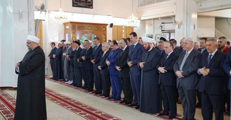 أدى بشار الأسد صلاة عيد الأضحى في جامع الروضة بدمشق.