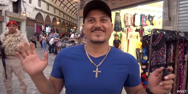 والتقت “دي فيلت” شاباً سورياً، يملك إقامةً ساريةً في ألمانيا، في سوق مدينة حمص، وقال باللغة الألمانية، إنه يجد أن كل شيء بخير في حمص، مدينة زوجته، مضيفاً أنه يقضي العطلة هناك بشكل متكرر ليزور أقاربه.