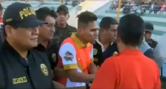 اعتقال لاعب بيروفي خلال مباراة كرة قدم ( فيديو )