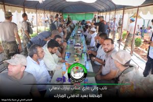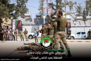 المجلس المحلي لمدينة بزاعة وريفها : “نائب والي غازي عنتاب يبارك (الخميس) لأهالي الباب وبزاعة وقباسين بعيد الأضحى المبارك مع تقديم عرض مميز لسرية المهام الخاصة بقوات الشرطة والأمن العام الوطني في مدينة الباب وريفها”.