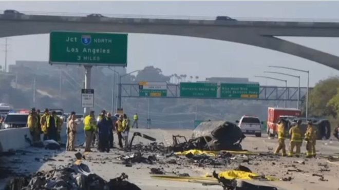وقال شهود عيان إن السيارة الماكلارين كانت تنطلق بسرعة 100 ميل في الساعة وكانت تسير في الاتجاه المعاكس جنوبا في المسار المؤدي إلى الشمال على طريق 805 الذي يربط بين كاليفورنيا وولايات أخرى.