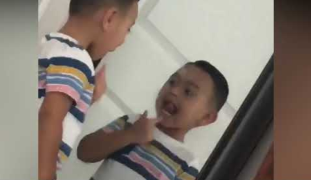 صورة هذا الطفل في المرأة تحير مستخدمي الإنترنت ( فيديو )