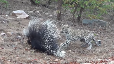 فهد يفشل بافتراس نيص بري في حديقة بجنوب إفريقيا ( فيديو )