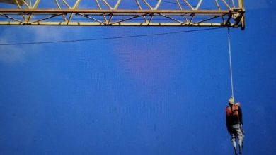 ألمانيا : دمية تمثل لاجئاً مشنوقة على ارتفاع 23 متراً في برلين