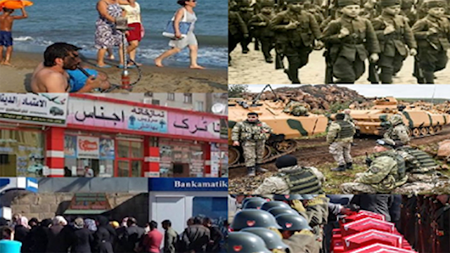 الا يكفيكم يا تراك نظفنا لكم حاويات الزبالة والطرقات …الا يكيفكم يا اتراك شحتم مليارات الدولارات على عاهاتنا … الا يكفيكم يا اتراك جعلتم مننا كلاب المسعورة تهددون بها العالم للحصول على الامتيازات خدمتا لبلدكم و مواطنيكم …الايكيفكم بعتونا خطوط الحمر الوهمية ودفعنا ثمنها دماء اطفالنا … الا يكفيكم يا اتراك سرقتم مصانع حلب خيرة الصناعة السورية …..الايكفيكم يا اتراك سمينا اطفالنا رجب وطيب واردوغان وامينة وسليمان شاه وعثمان وضراب السخن ..وحسدتم اركيلة سوري معتر