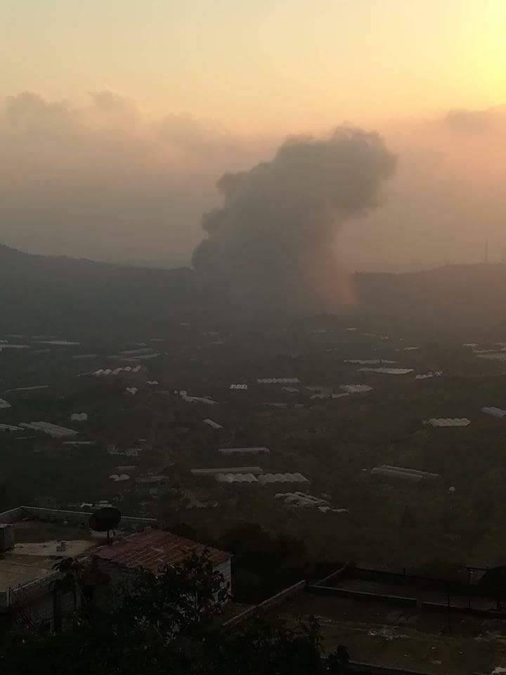 وبث موالون صوراً ومقاطع مصورة، تظهر ارتفاع أعمدة الدخان الكثيف، في كل من منطقتي وادي العيون، وبانياس، دون الكشف عن طبيعة الأهداف التي طالتها الغارات الجوية.