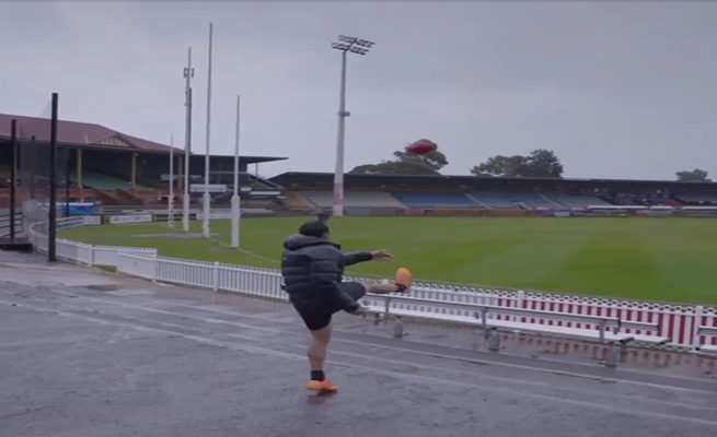 ونشر الفيديو رفيق لاعب الفريق الأسترالي في صفحته على إنستغرام. ووقع الحادث في ملعب كرة القدم في مدينة أديلاد جنوبي أستراليا، بعدما عطل الطقس السيئ تدريبات الفريق.