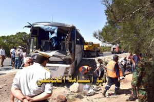 ونقلت وكالة أنباء النظام “سانا” عن قائد الشرطة في حمص قوله، الجمعة، إن “حافلة لنقل الركاب انقلبت بسبب السرعة الزائدة أثناء سيرها على الطريق الدولي حمص- دمشق قرب الجسر المؤدي إلى قرية شنشار عند مفرق قرية الديبة جنوب مدينة حمص بنحو15 كم ما أدى إلى وفاة 7 مواطنين وإصابة 24 آخرين بجروح وكسور متنوعة”.