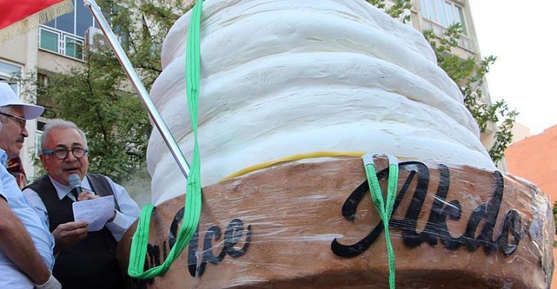شهدت ولاية قهرمان مرعش، جنوبي تركيا، الجمعة، تجربة لتسجيل رقم قياسي عالمي في صنع “أكبر كرة بوظة”.