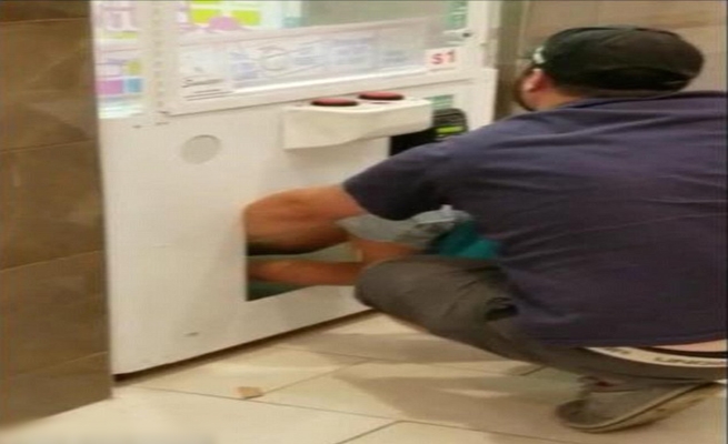 المشتبه به، والذي كان معه أيضًا صبي يبدو في الخامسة من عمره، غادر مع أطفاله والأشياء المسروقة، ومن غير الواضح ما هي تلك الأشياء المسروقة تحديدًا، لكن من المعروف أن نوع الآلة التي استهدفها الرجل تحوي إلكترونات قيمة وبطاقات هدايا غالية.