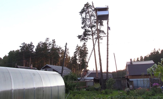 وكان يوري قد طلب من جيرانه قطع الأشجار، لكنهم لم يستجيبوا لطلبه، لذا فقد قرر أن يحل المشكلة على طريقته الخاصة. فبينما كان جيرانه يقضون إجازة خارج المنزل، استغل الرجل غيابهم وأخذ على عاتقه تجريد أشجار الصنوبر من الأغصان، قبل أن يبني بيتاً خشبياً فوقها.