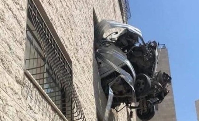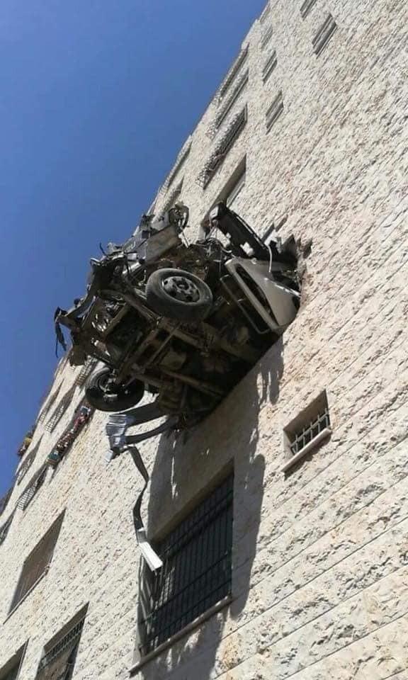 أغرب حادث سير في فلسطين .. كيف وصلت السيارة إلى نافذة البناء ؟