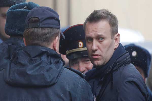 وكتبت كيرا يارميش على تويتر أن “أليكسي نافالني أوقف خارج مركز الاعتقال” مشيرة إلى أنه تم اقتياده إلى مركز للشرطة في وسط موسكو. (AFP)