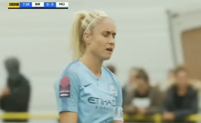 لاعبة مانشستر سيتي تسجل هدفاً من منتصف الملعب في شباك فريقها ! ( فيديو )