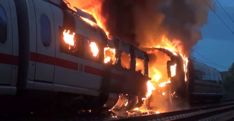ألمانيا : حريق يلتهم قطاراً سريعاً و إجلاء المئات من الركاب ( فيديو )