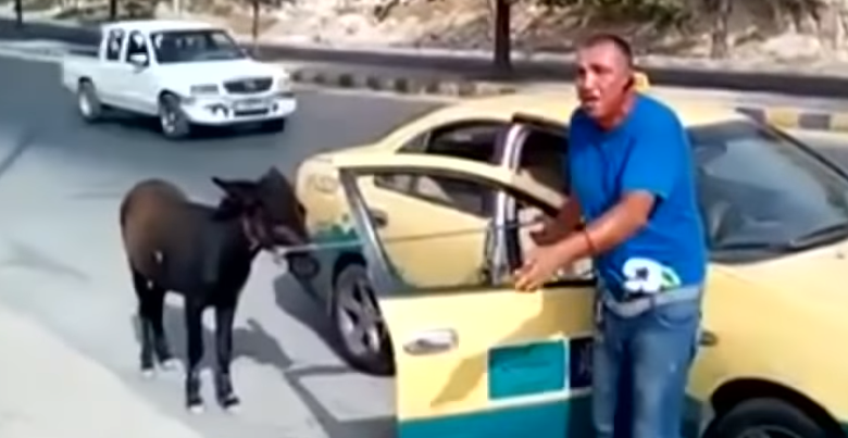 فيديو ساخر لحمار يركب تاكسي في الأردن