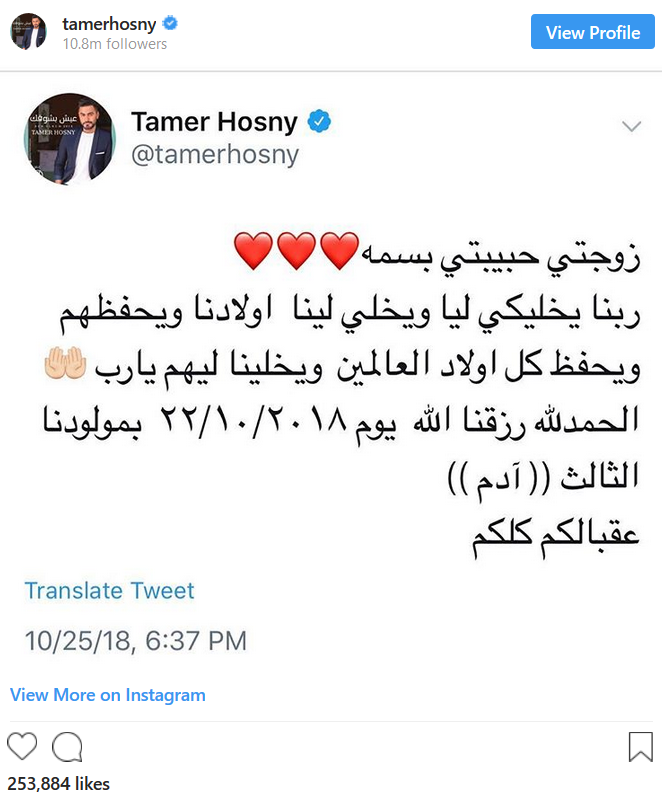 الفنان المصري تامر حسني يرزق بمولود جديد