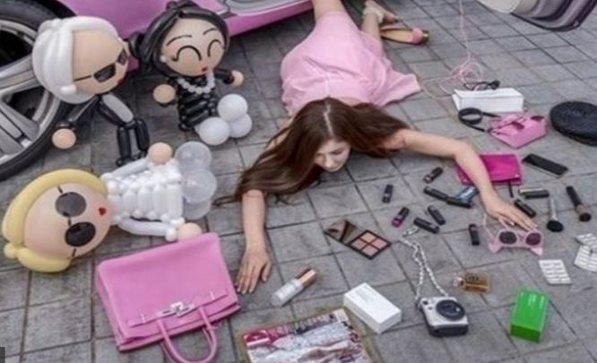 وأظهر مقطع فيديو تم تصويره مؤخراً، امرأة صينية وهي تستلقي على ممر المشاة وسط مقتنياتها التي تشمل حقيبة يد حمراء من “غوتشي”، ومجموعة متنوعة من المكياج والملحقات الأخرى.