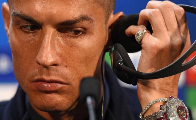ظهر نجم كرة القدم #كريستيانو_رونالدو مؤخراً، خلال المؤتمر الصحافي الذي سبق لقاء فريقه الحالي يوفنتوس الإيطالي وفريقه السابق مانشستر يونايتد الإنكليزي، وهو يرتدي مجموعة من المجوهرات أبرزها ساعة يد فاخرة مرصعة بالماس يبلغ ثمنها حوالي 2,2 مليون دولار شكّلت مصدر اهتمام الصحافة العالميّة والمتابعين على وسائل التواصل الاجتماعي.