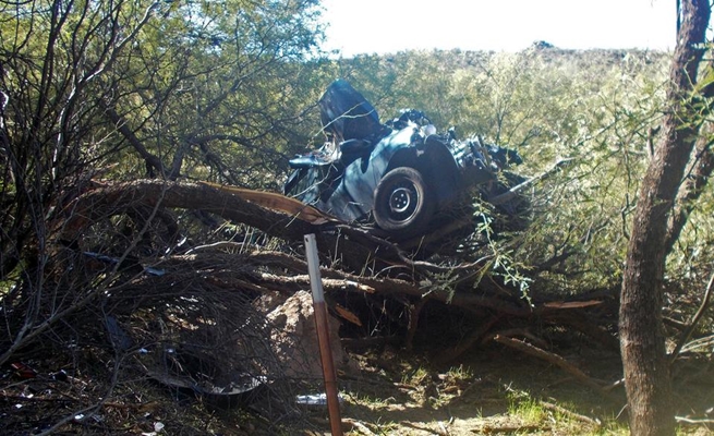 وأفادت الإدارة بأن السيارة سقطت مسافة 15 مترا تقريبا في واد “وهبطت على شجرة مسكيت حيث ظلت معلقة”.