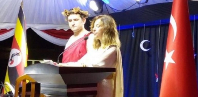 ووفق ما نقلت “سكاي نيوز” عن وسائل إعلام تركية، فقد أظهرت صور على موقع التواصل الاجتماعي “تويتر” نشرها حساب البرلمان الأوغندي، الذي حضرت رئيسته، ريبيكا كاداغا، الاحتفال، السفيرة ياوزالب وبجانبها مسؤول تركي، وهي ترتدي ثوبا أشبه برداء إغريقي تراثي.