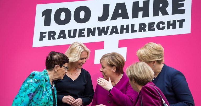 وقالت ميركل في كلمة القتها بمناسبة ذكرى مرور 100 عام على منح المرأة الألمانية حق الانتخاب والترشح في عام 1918 إن قضية النسب النسائية “كوته” في شغل المناصب الحكومية وفي عالم الاقتصاد الحر ليست سوى خطوة أولية على طريق المساواة الكاملة بين المرأة والرجل.