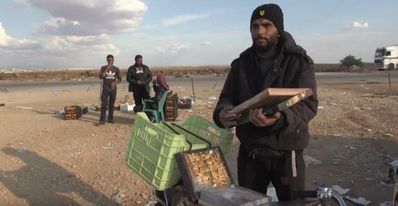 وجاء في تقرير الوكالة: “بعدما حمل السلاح لسنوات في صفوف فصيل معارض في مدينة درعا، يحمل بهاء اليوم علب البرازق والحلويات الشامية ويبيعها للزبائن الأردنيين الذين يقبلون بكثافة على سوريا بعد نحو شهر من إعادة افتتاح معبر نصيب الحدودي.
