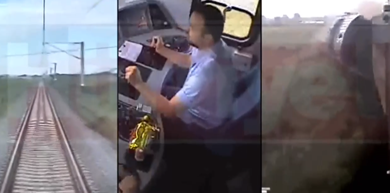 وتظهر اللقطات، بحسب ما نقلت “سكاي نيوز” قائدي القطار وهما يعترضان لهزة شديدة كادت تقفز بهما من مقعديهما في مقدمة القطار، فيما تظهر لقطات أخرى تهاوي عربات في القطار مثل حجارة الدمينو، قبل أن يتوقف القطار كليا.