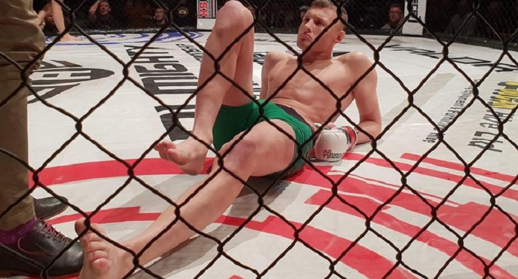 أصيب البريطاني جاك كولشاو في الركبة أثناء احتفاله بالفوز بالضربة الفنية القاضية على منافسه زاك إدواردز في بطولة MMA للفنون القتالية المختلطة في إنكلترا.
