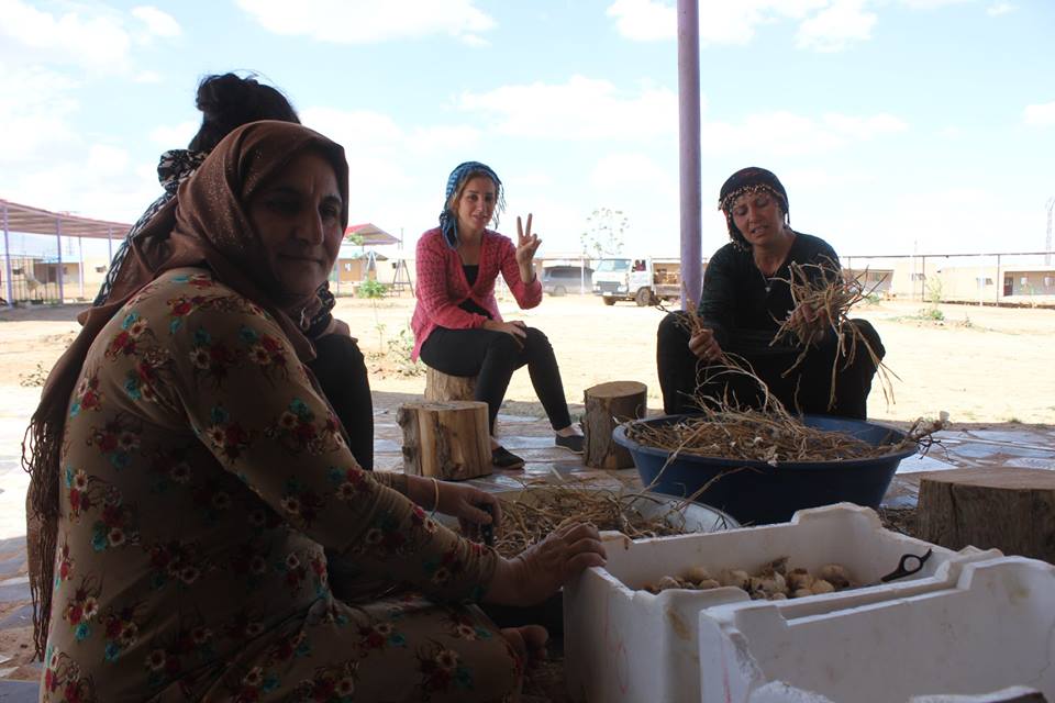 ونوهت هفال إلى أن نساء القرية تعاونن في العمل بإنشاء قريتهن، بالإضافة إلى مشاركتهم العمل في مختلف مجالات الحياة خاصة بالزراعة والتعليم وتربية المواشي ومحلات البيع والشراء، مع تقديم سلة غذائية شهريا لكل أسرة.