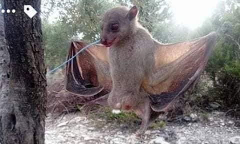 صفحات وشبكات إخبارية محلية قالت، إن الصياد فوجئ بـ “خفاش عملاق” في المصيدة التي وضعها بحديقة منزله بقرية البودي بريف جبلة، بهدف اصطياد الطيور.