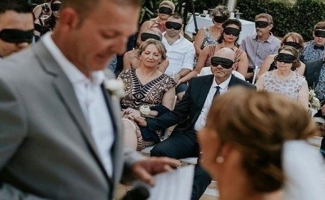أستراليا : مدعوون يضعون عصبات على أعينهم في زفاف عروس كفيفة ( فيديو )